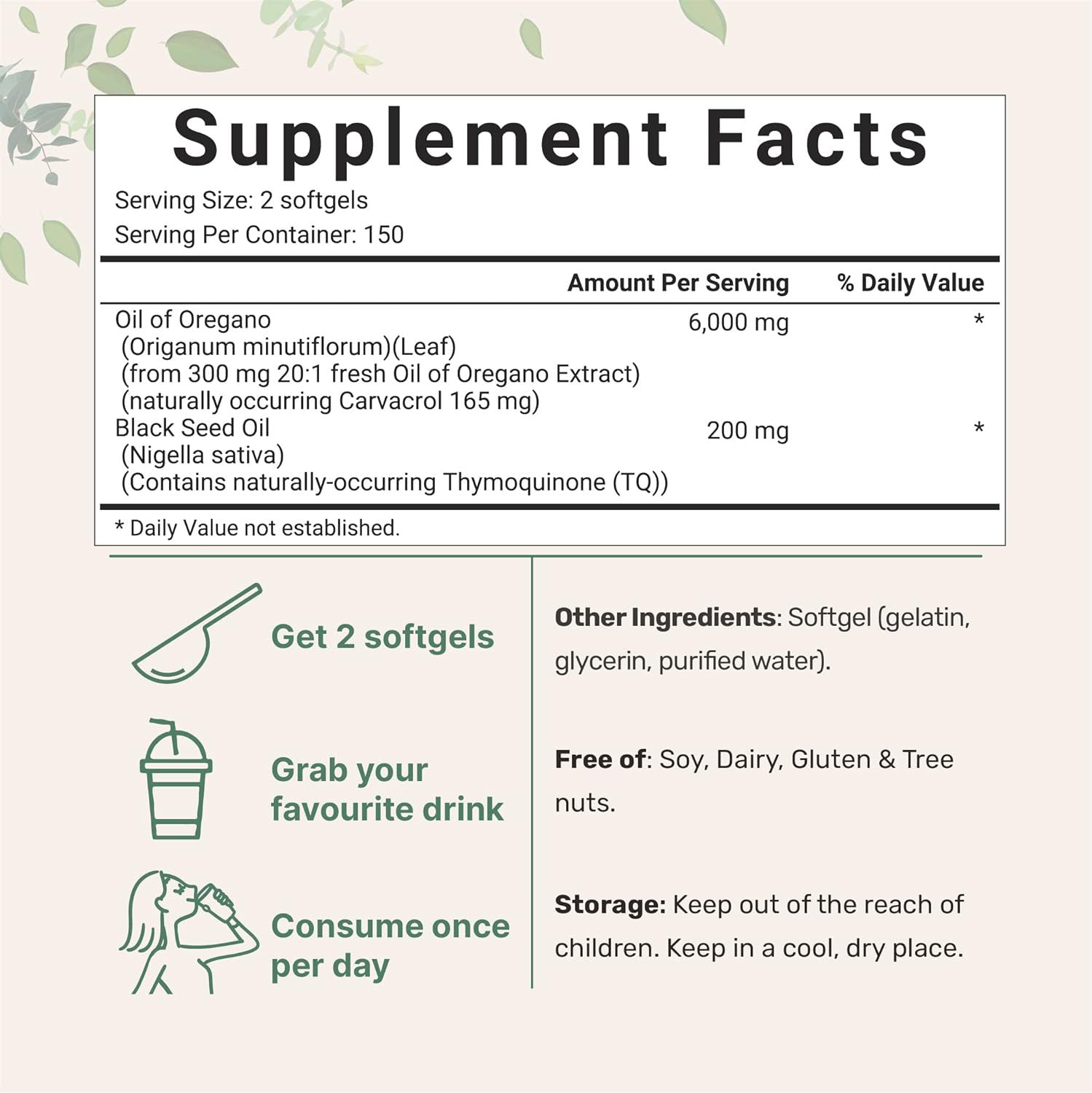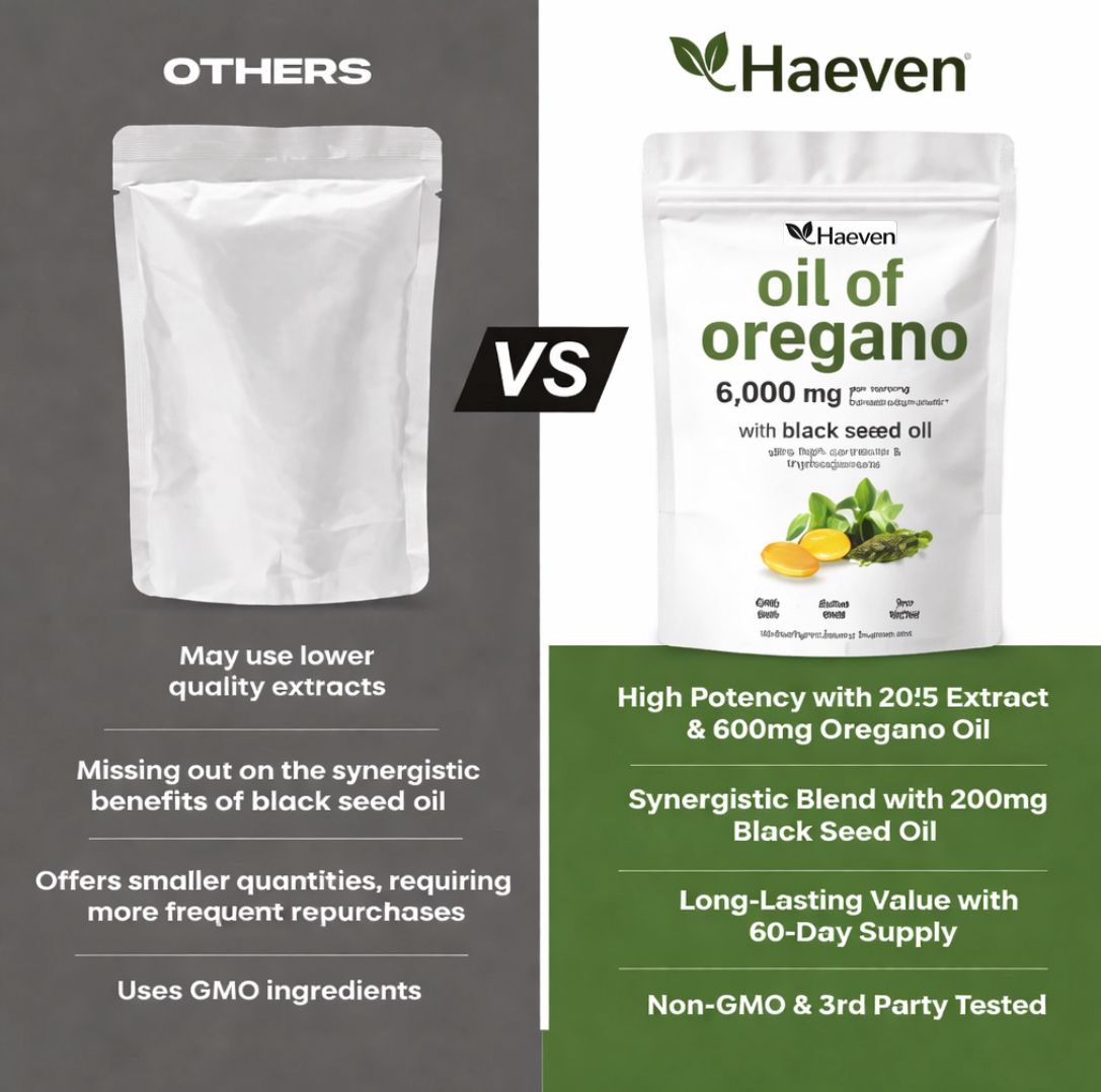 Haeven uses a high-potency oregano extract combined with black seed oil for a synergistic, clean, and effective formula—no fillers, no unnecessary additives.